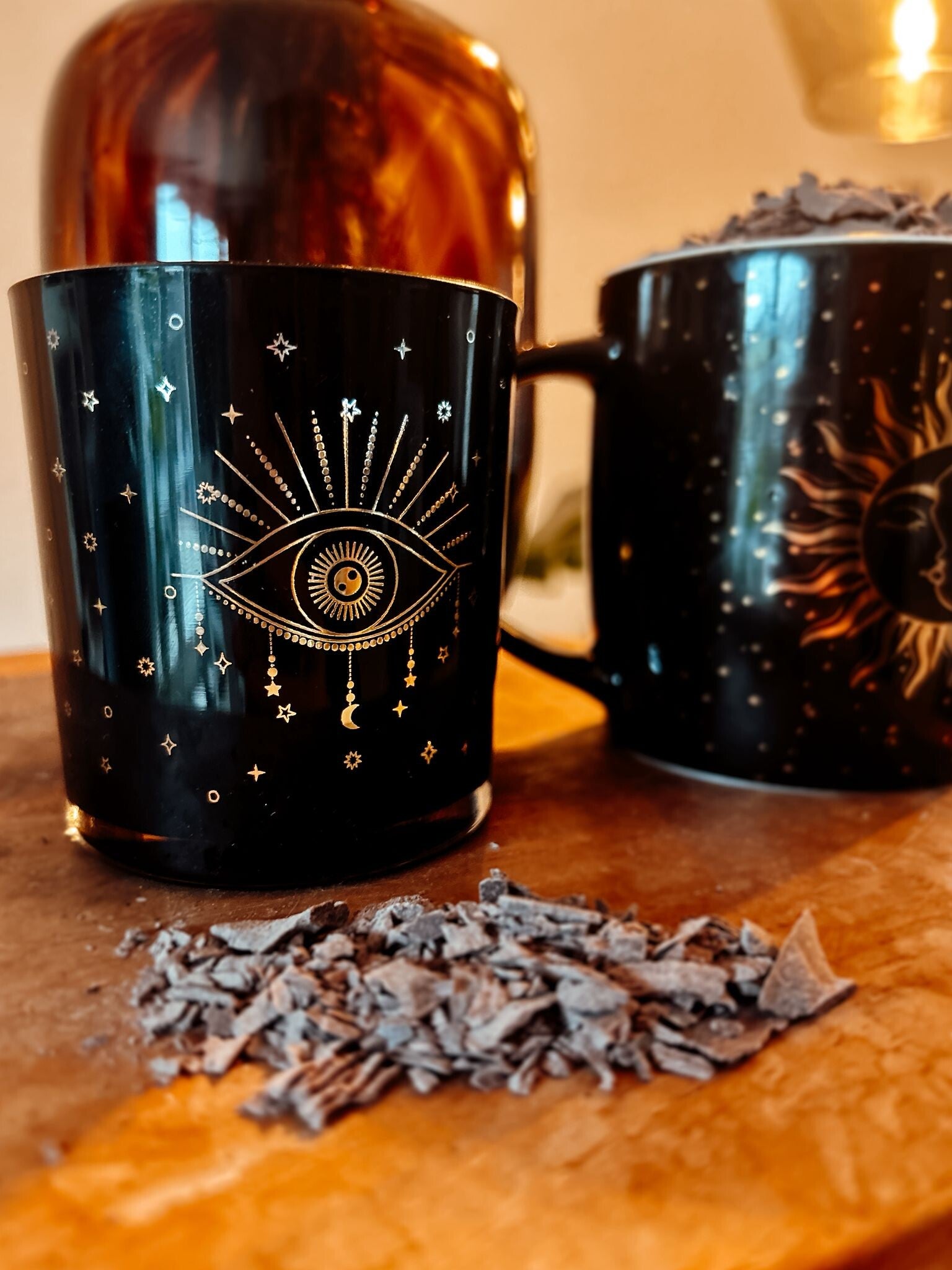 Combineer dit lichtpuntje met onze mok in dezelfde stijl voor een compleet ritueel vol rust en magie.